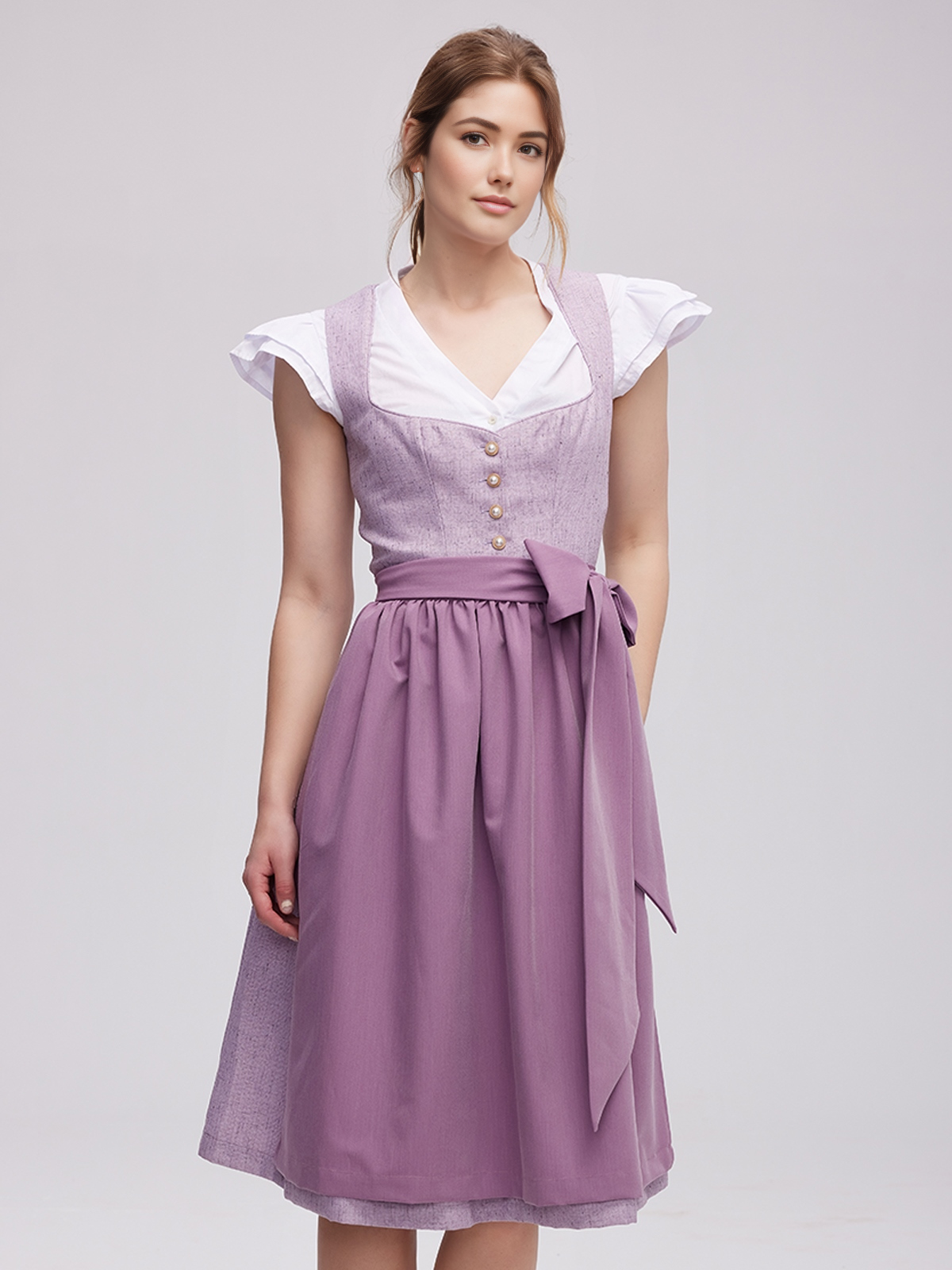 Lila ist die Farbe der Kreativität und Spiritualität. Ein lila Dirndl (wie auf diesem inspirierenden Bild) spricht Frauen an, die sich von der Masse abheben wollen.